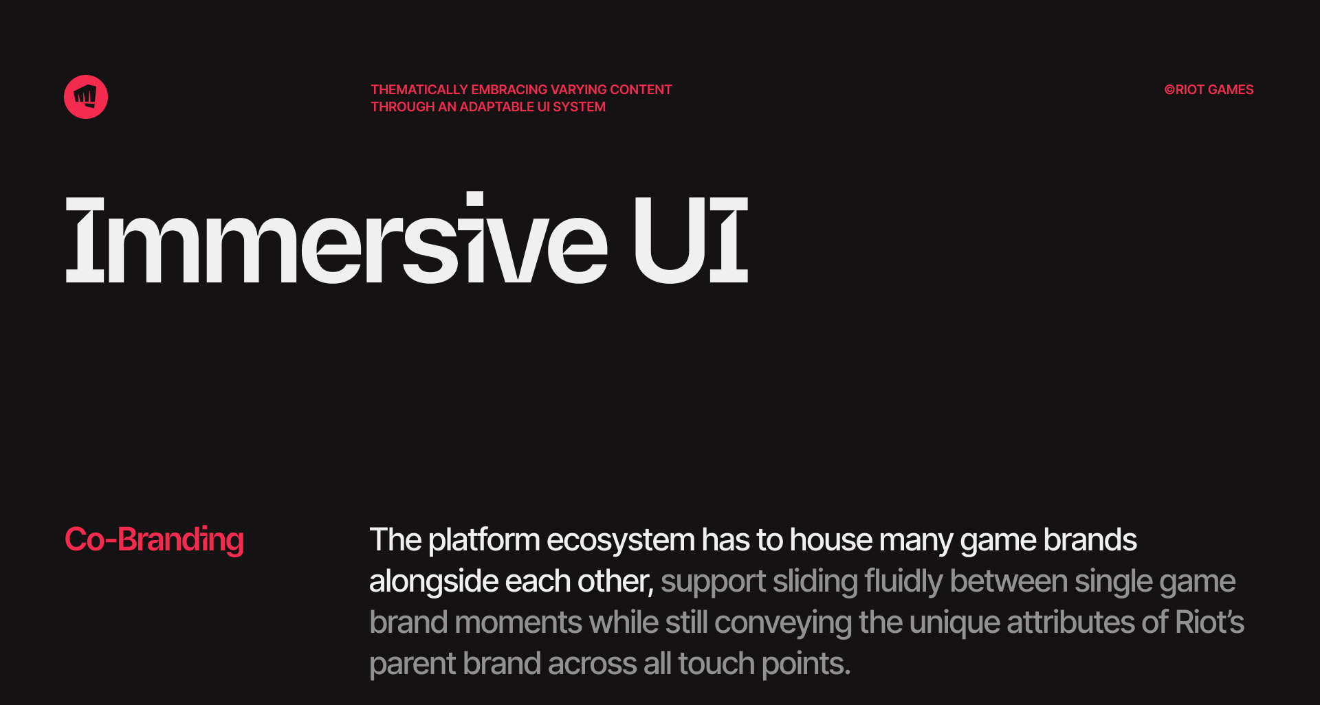 A multi-game platform design system, where the UI dynamically adapts to its content, ensuring a rich and immersive experience for players, and easy maintenance for internal teams at Riot Games. The system entails an automated color system, global accessib…